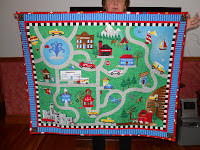 This playmat ,I made for Big Brothers Christmas, of course he had to have trucks and cars to play with, we supplied that also. I think he will enjoy this, but as with all little ones (he's 2 1/2 years),